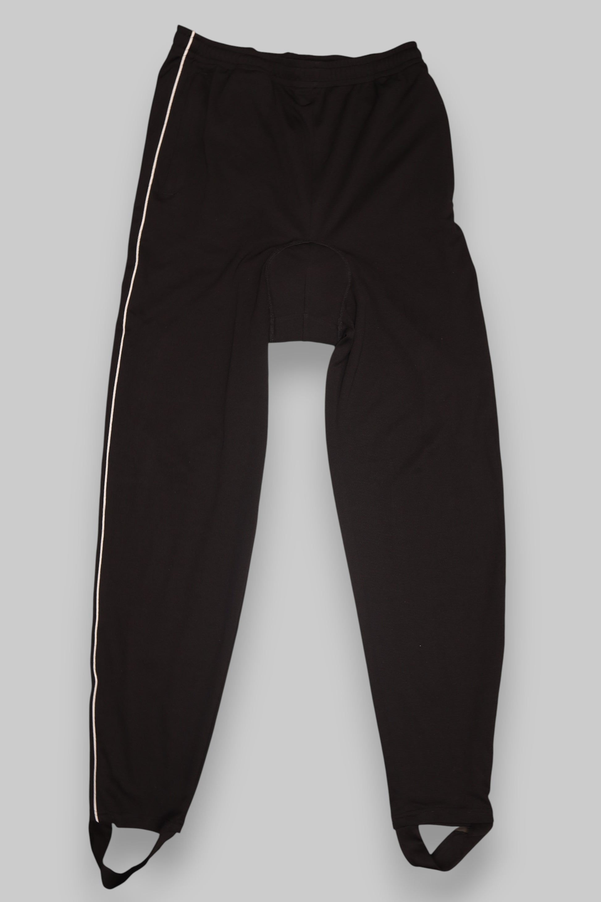 Foot Straps: Elastic stirrup straps keep pants in place during motion