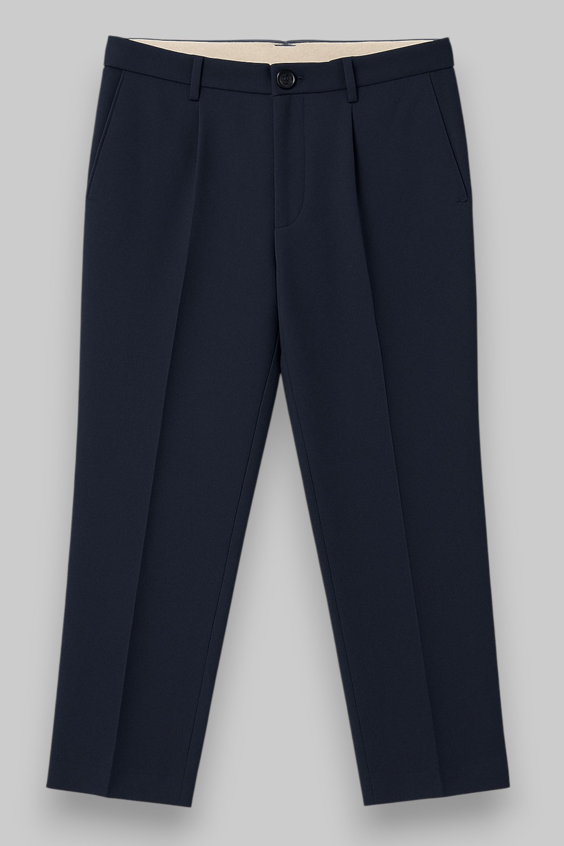 These C&A men’s dress trousers in deep navy blue are a wardrobe essential for both formal and business occasions. Designed with a clean flat front and sharp crease lines, they deliver a polished look with modern simplicity.