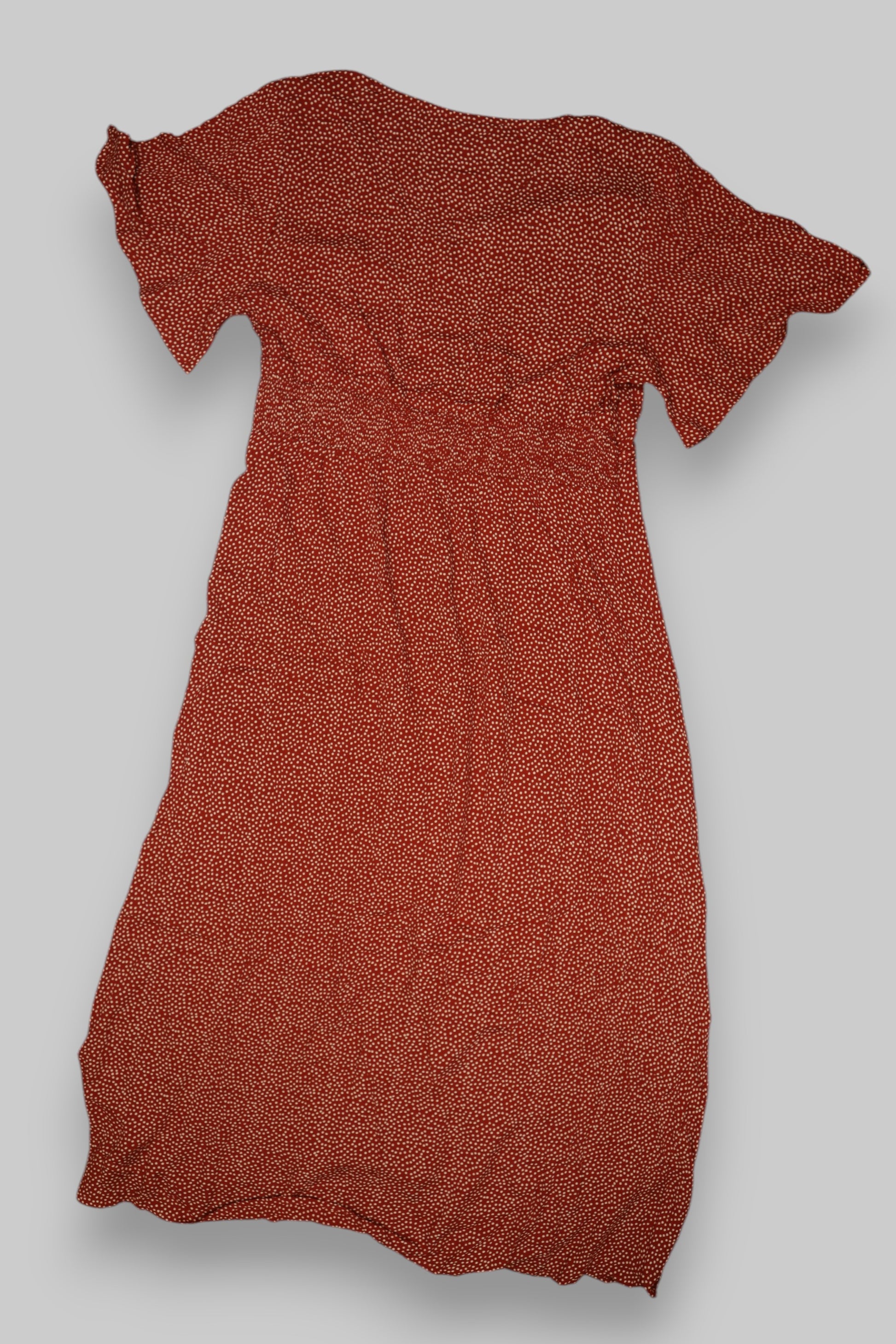 Flowy, flattering, and full of personality, this boho-inspired maxi dress from DIDI (Pretty Different) brings effortless charm to your warm-weather wardrobe. Featuring a rich burnt orange hue and playful white dot pattern, it’s finished with a drawstring waist and tassel ties for a customizable fit.