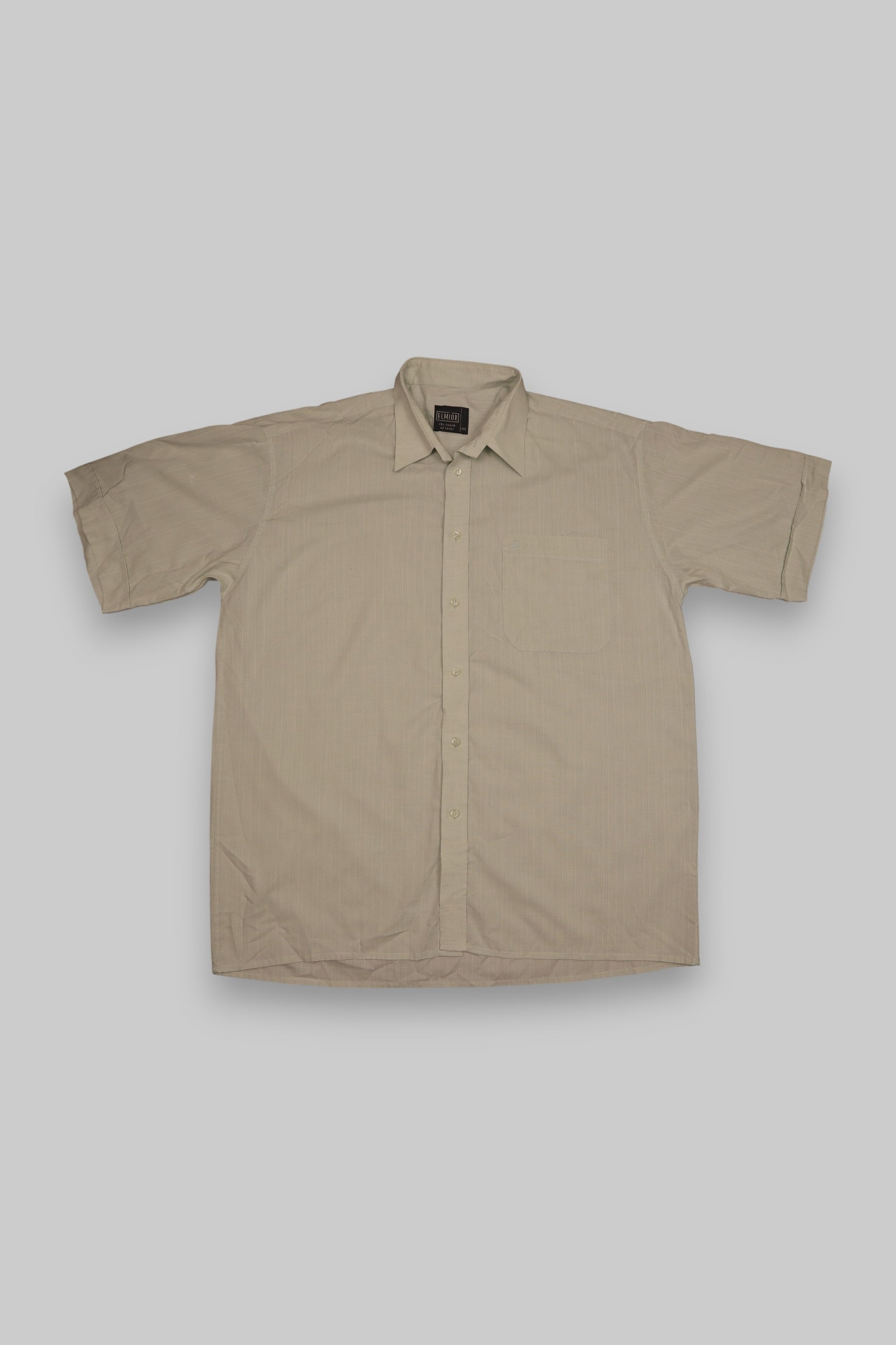 This Elmior short-sleeve shirt blends comfort and effortless style, featuring a pale sage green tone with a subtle vertical stripe texture for a refined yet casual look. Made from a lightweight cotton-polyester blend, it’s breathable and ideal for warm weather. The classic point collar, chest pocket, and straight hem create a timeless silhouette suitable for both casual and smart-casual occasions.