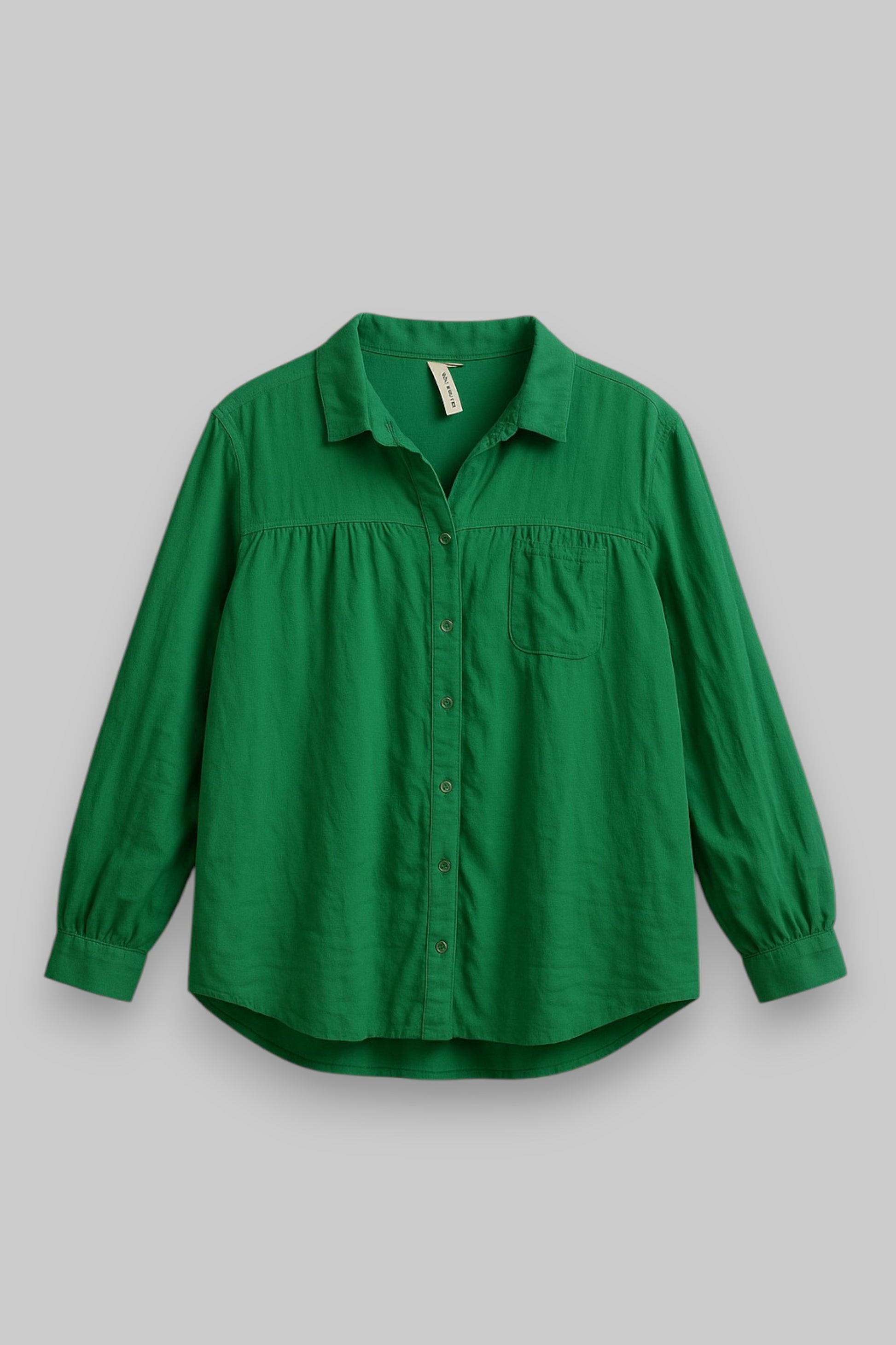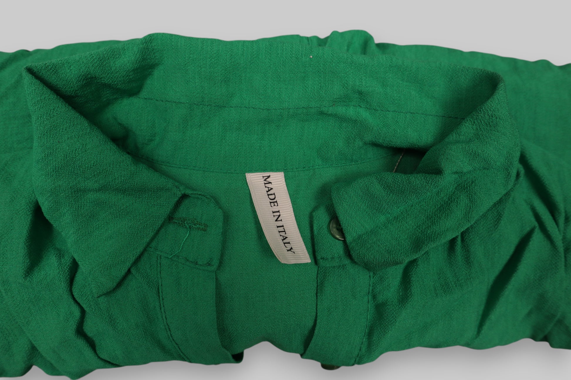 This vibrant emerald green blouse is crafted in Italy from a soft, breathable blend of 87% viscose and 13% polyester, offering a lightweight drape and year-round comfort. Its relaxed silhouette and refined details make it a versatile addition to any wardrobe.