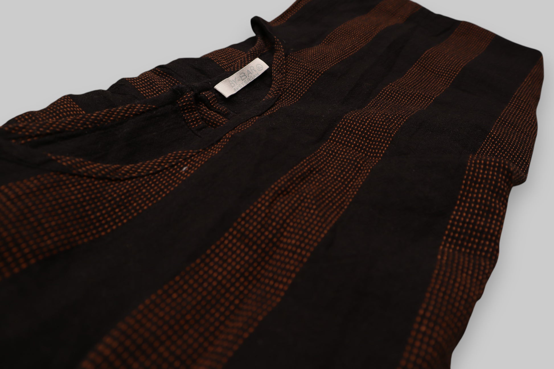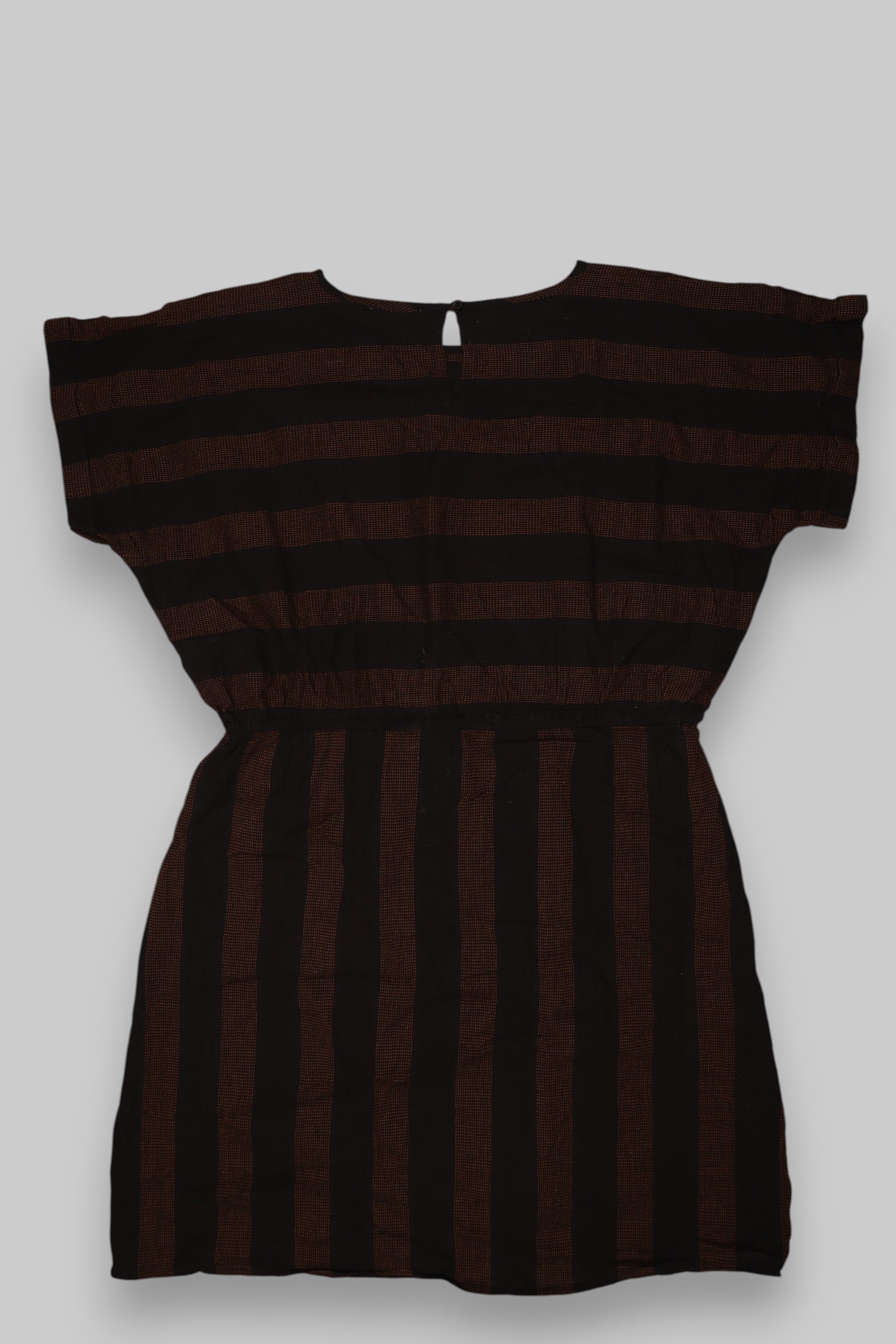 Especially BY-BAR Cotton Stripe Dress – Black & Rust | Casual Fit | Made in India