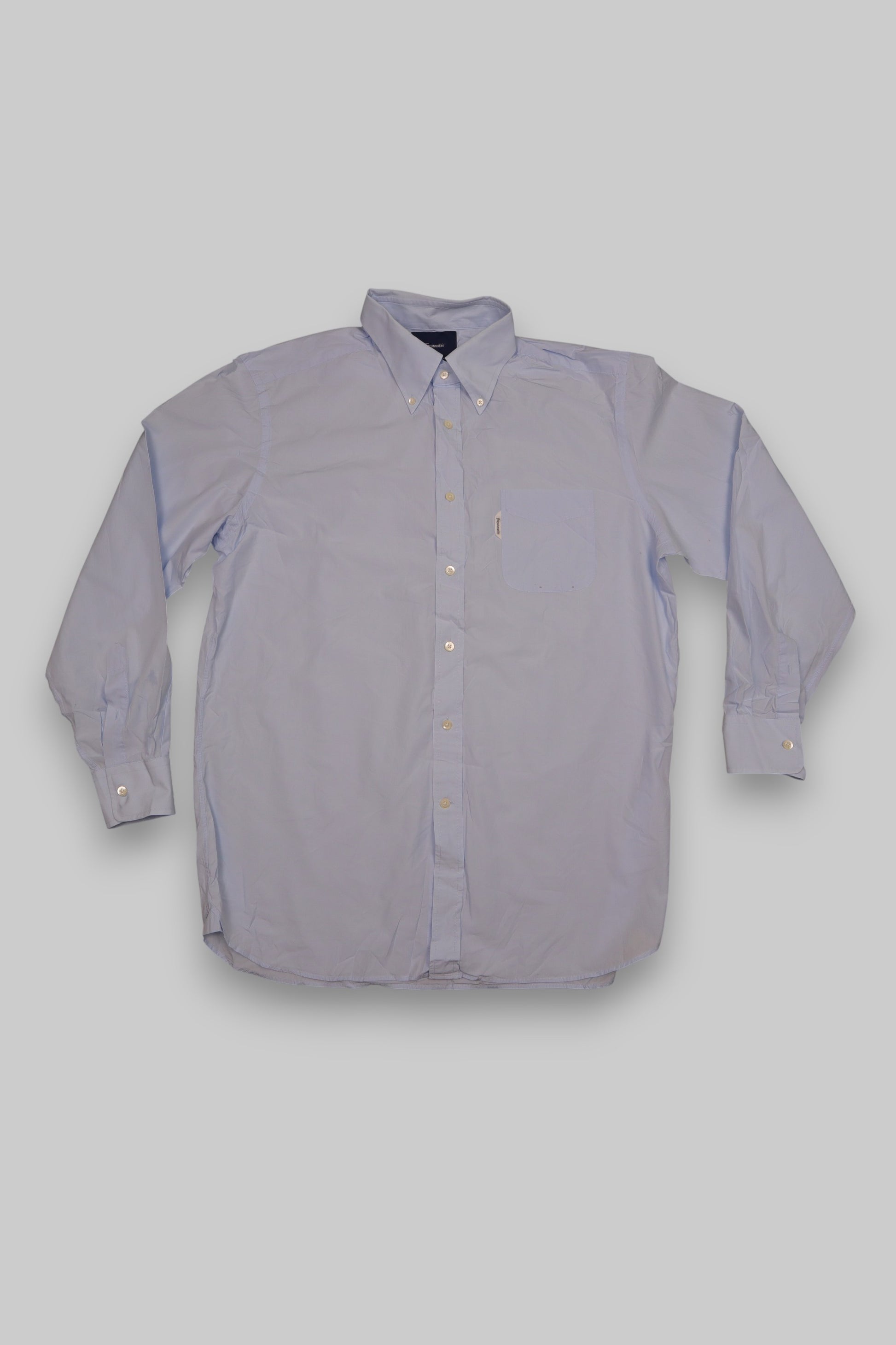 This Façonnable CLUB long-sleeve dress shirt delivers refined everyday style with a clean, tailored look. Crafted from 100% cotton poplin, it features a button-down collar, single chest pocket with the signature white brand tab, and pearl-like front buttons for a touch of sophistication. Perfect for business, smart-casual, or evening wear.