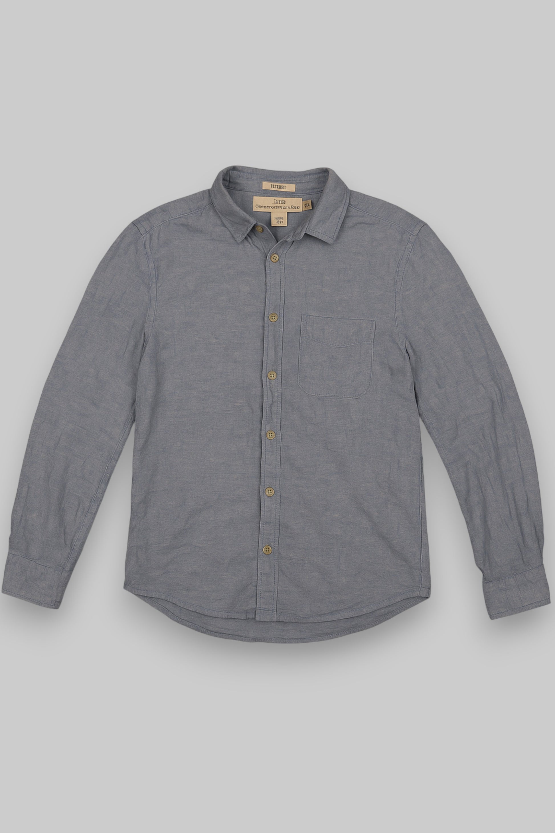 This H&M L.O.G.G. long-sleeve shirt blends casual sophistication with breathable comfort. Made from a cotton-linen blend, it features a light blue chambray texture with subtle white cross-weave detailing for a naturally soft, vintage-inspired look. Perfect for both relaxed and smart-casual occasions.