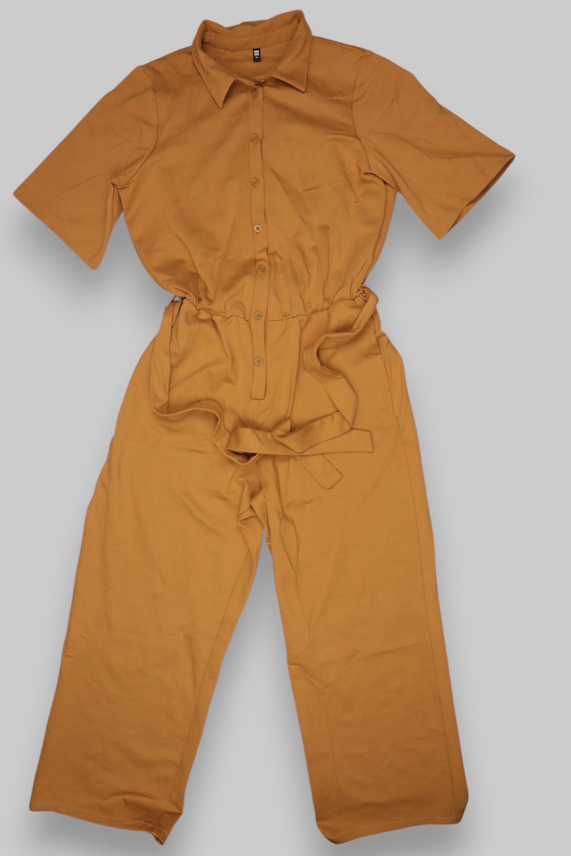 Effortless style meets everyday ease in this mustard yellow short-sleeve jumpsuit from HEMA. With its crisp tailored silhouette, shirt collar, and wide-leg trousers, this piece is a chic one-and-done outfit for casual days, weekend outings, or relaxed office looks.