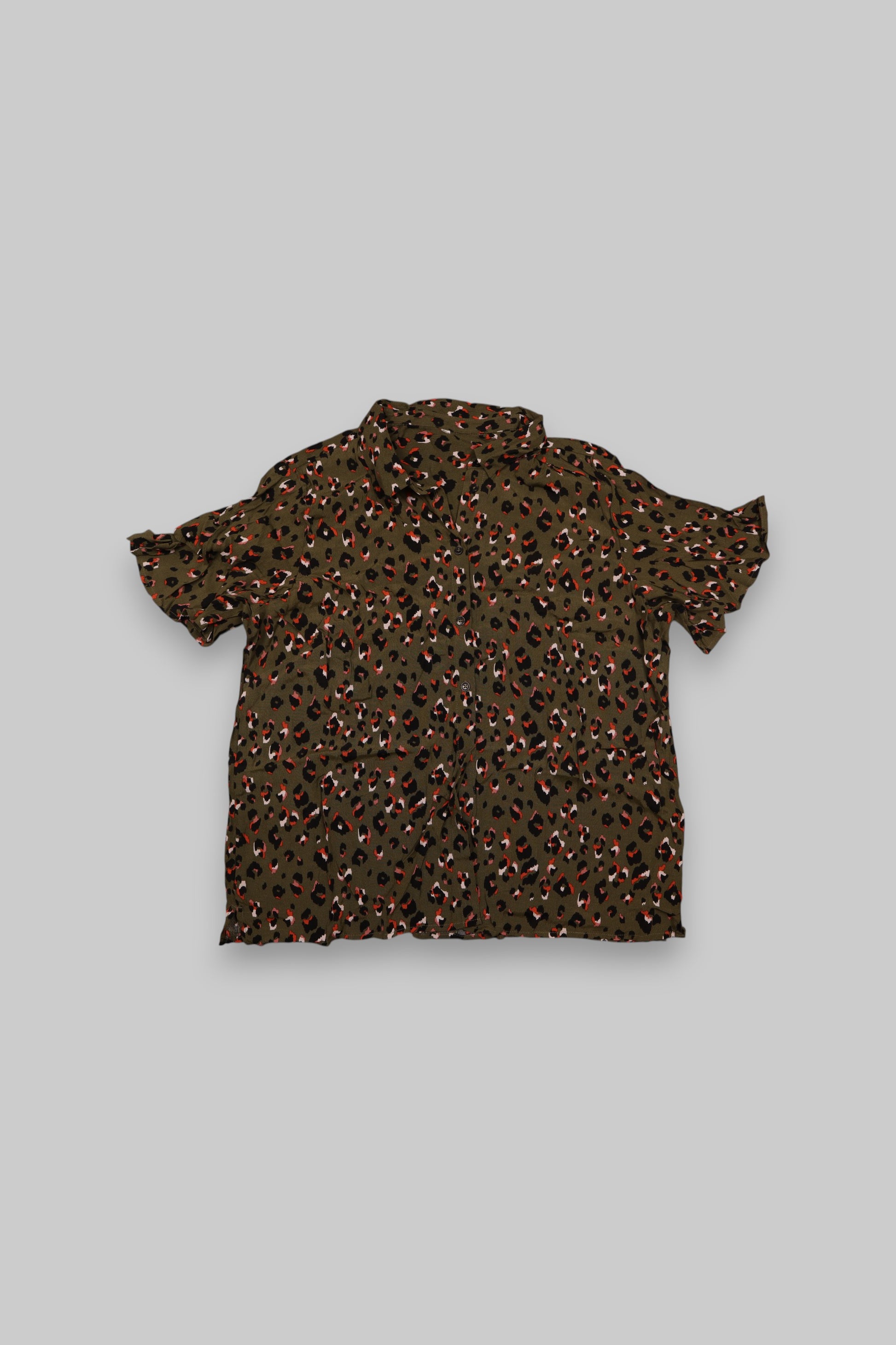 HEMA Olive Green Short-Sleeve Leopard Print Button-Up Shirt – Size XL