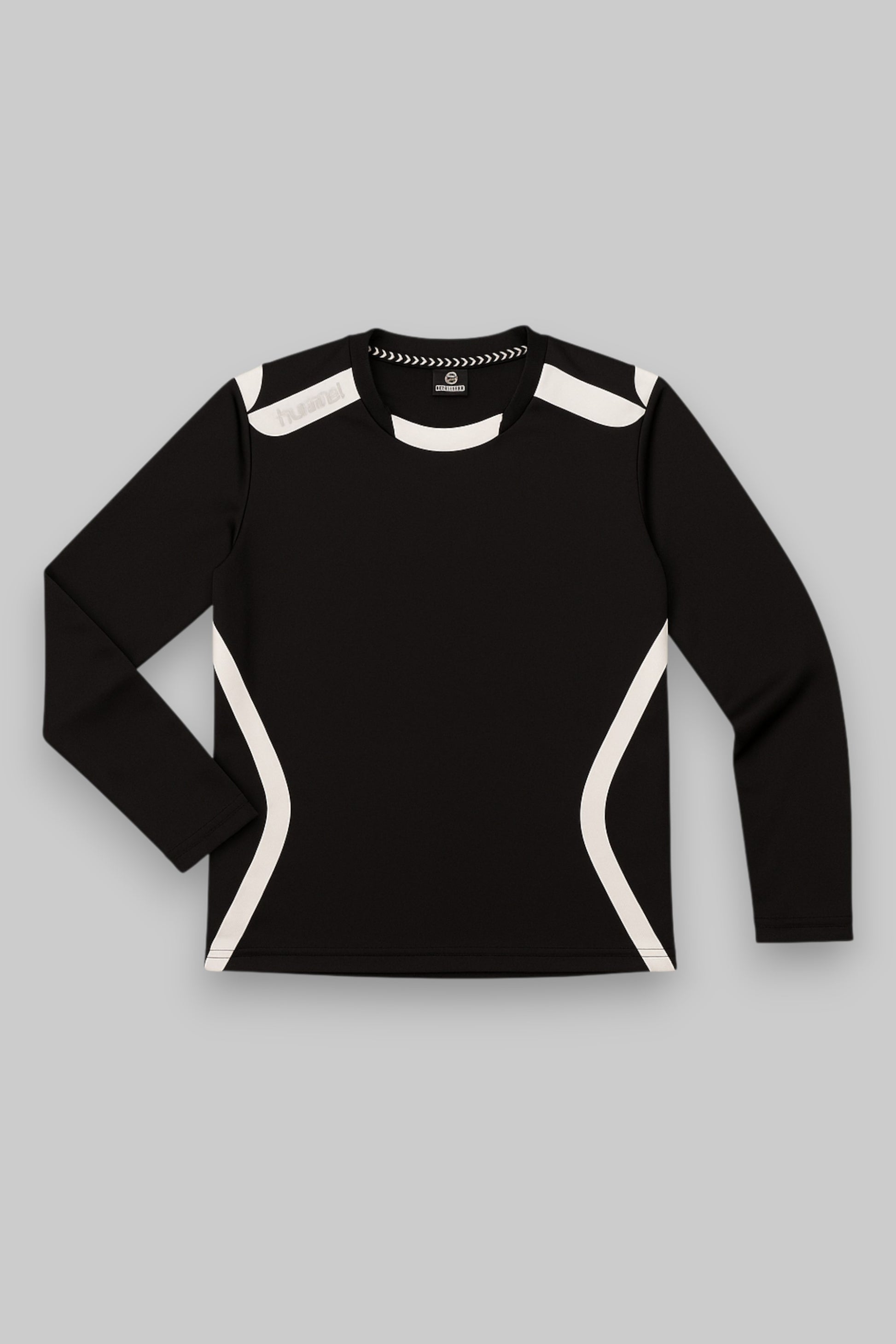 This Hummel long-sleeve performance top delivers a clean, athletic aesthetic with functional comfort. Designed in a black base with white contrast panels along the shoulders and sides, it provides a dynamic, sporty silhouette. The embroidered Hummel logo and signature chevron neck tape highlight the brand’s heritage in athletic wear. Lightweight and breathable, it’s ideal for training, school sports, or active everyday use.