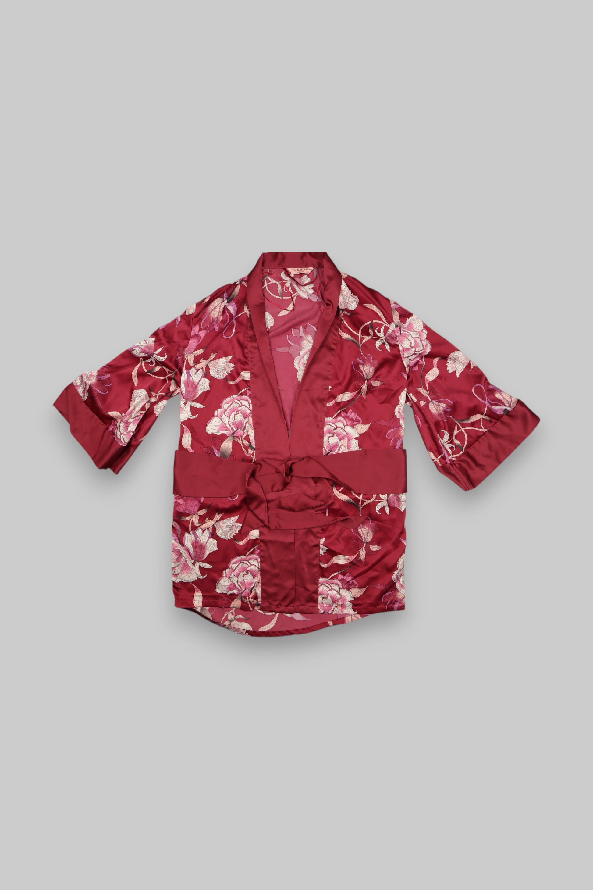 Hunkemöller x Ann-Kathrin Götze Deep Burgundy Floral Satin Kimono Robe – Size L
