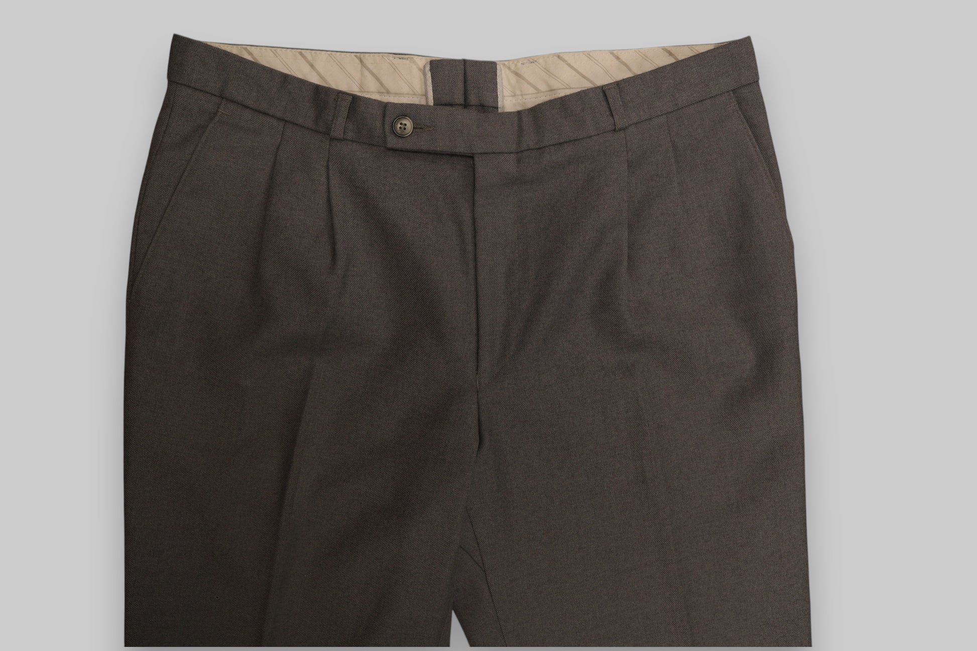 Lining: Beige with subtle diagonal pinstripe detailing along the inner waistband
