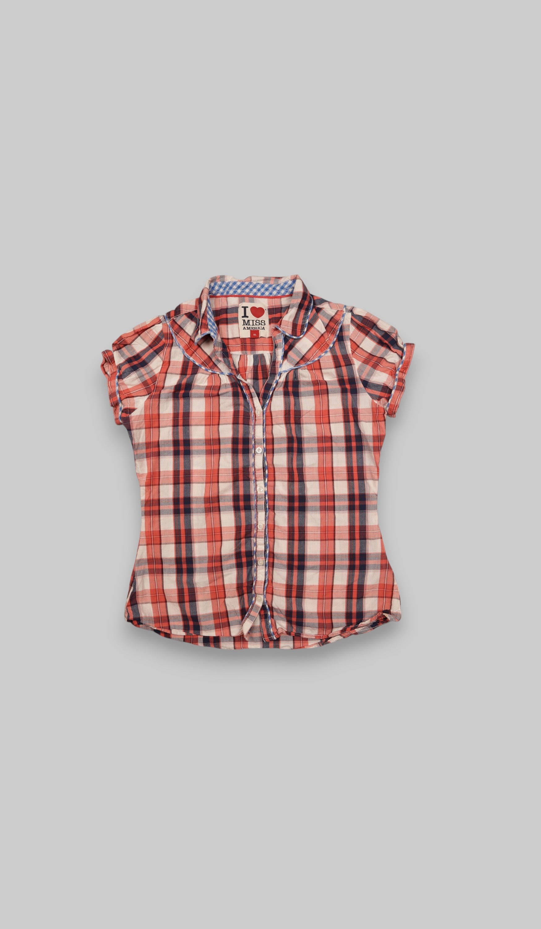 This Miss America short-sleeve plaid blouse offers a playful and feminine look with a lightweight, breathable feel. Crafted from 100% cotton, it’s perfect for casual or everyday styling.