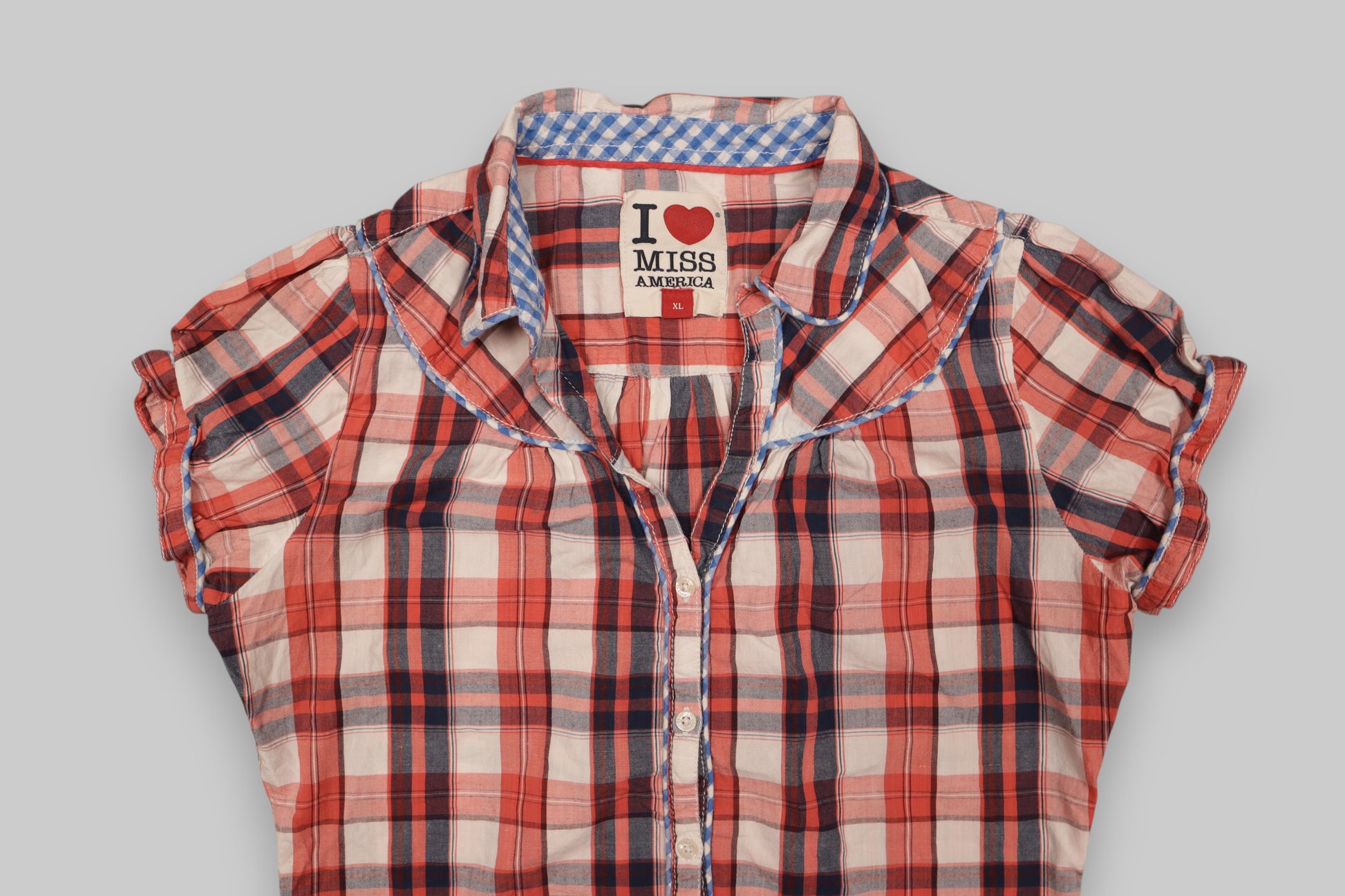 Miss America Women’s Short-Sleeve Plaid Blouse – Red/Navy/Off-White, Size XL
