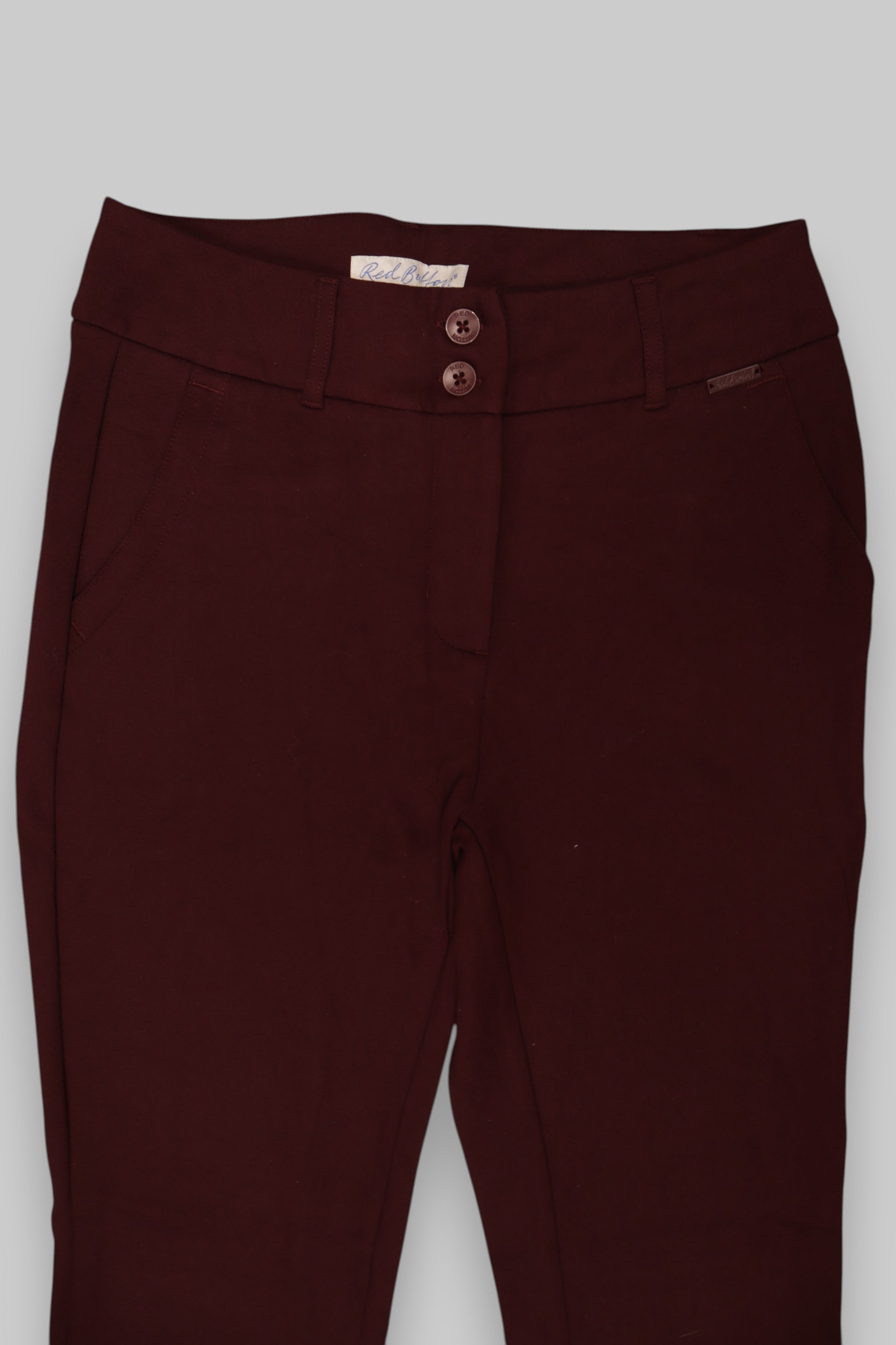 Red Button Aubergine Flared Trousers – High-Rise, Stretch Cotton Blend