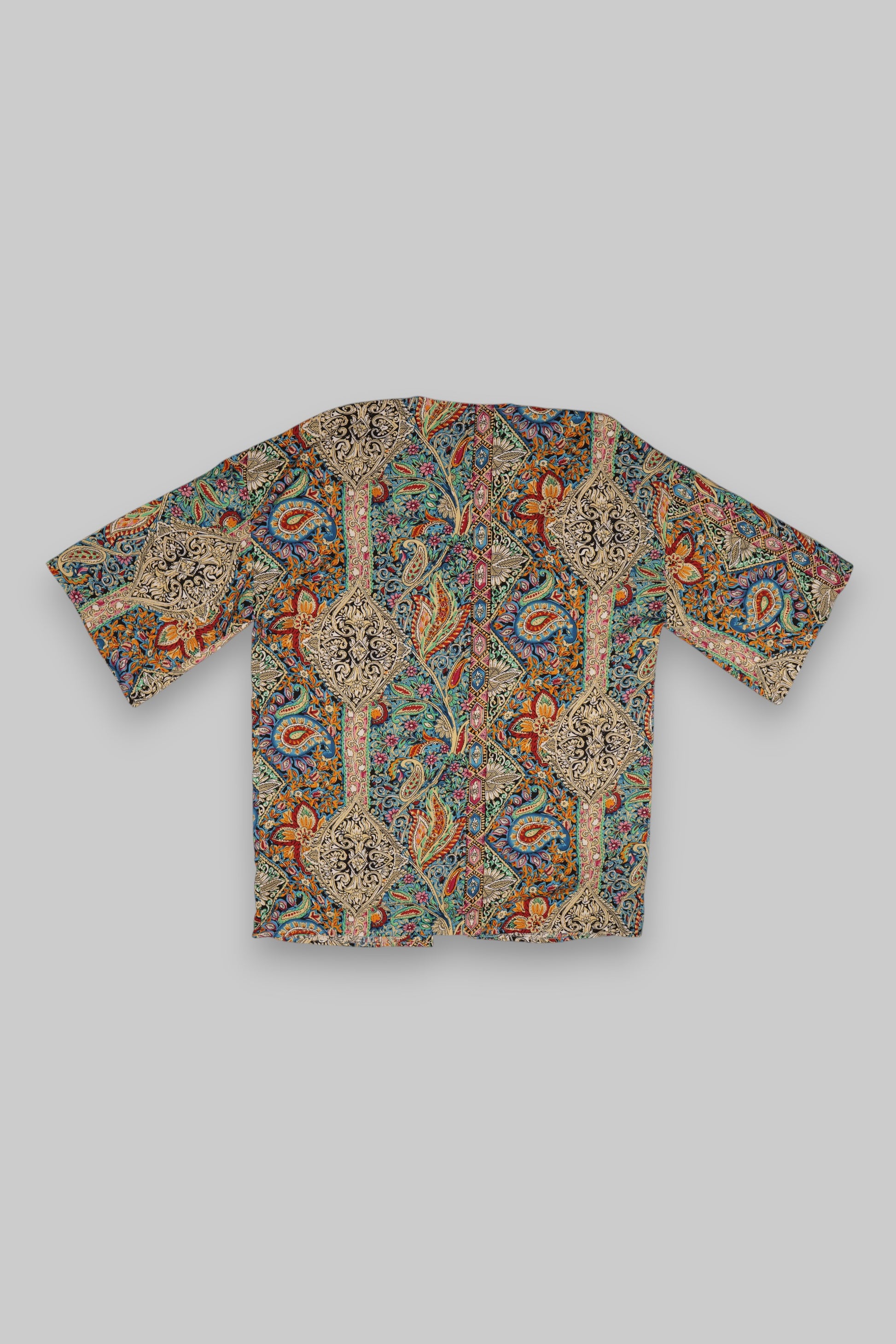 This unisex kimono jacket features a vibrant multicolor paisley and ornamental print, perfect for layering or adding a bohemian touch to any outfit. Made from 100% polyester, the lightweight, unlined fabric ensures comfort and flow.