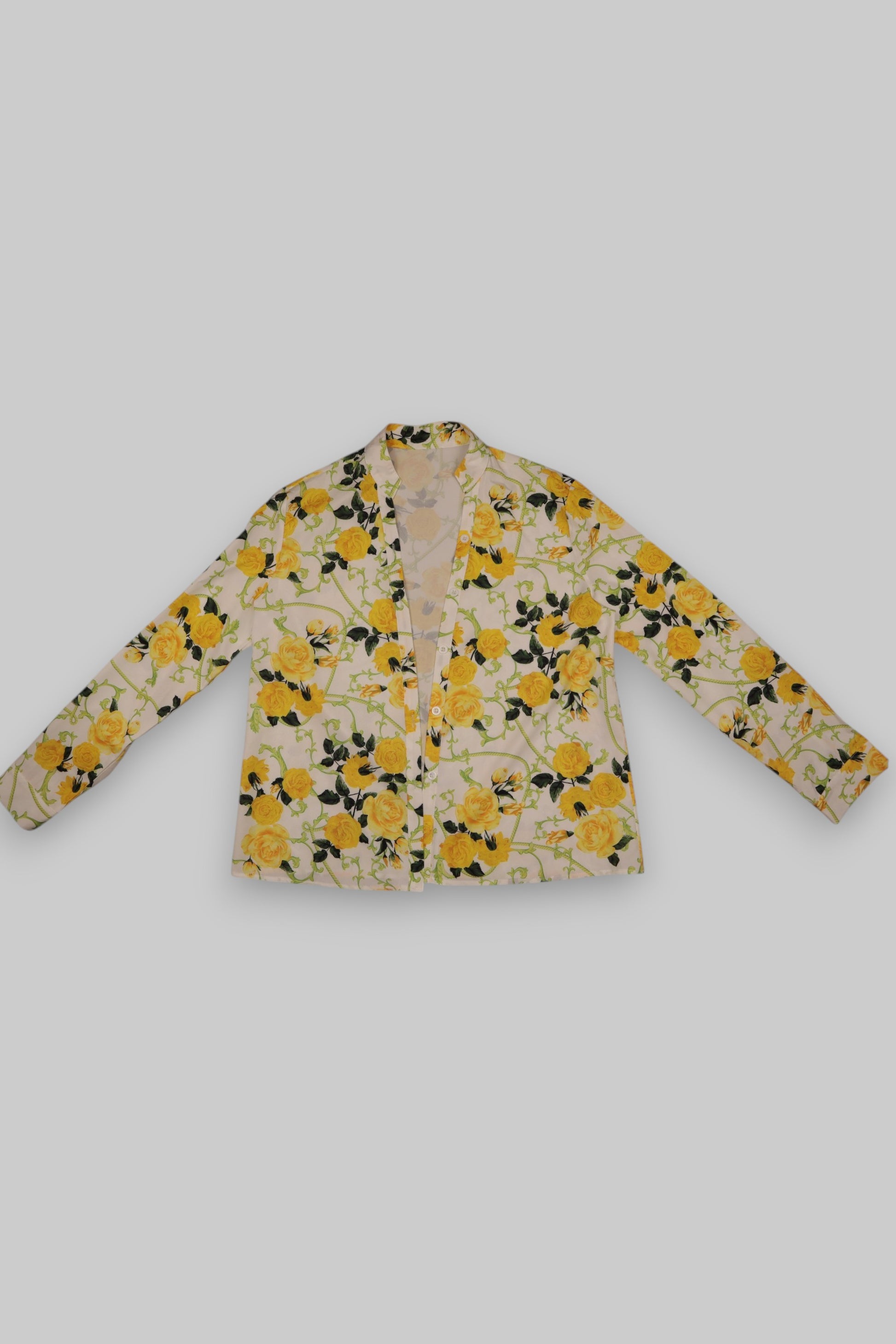 Women’s Floral Yellow Rose Blazer – Cream Base,