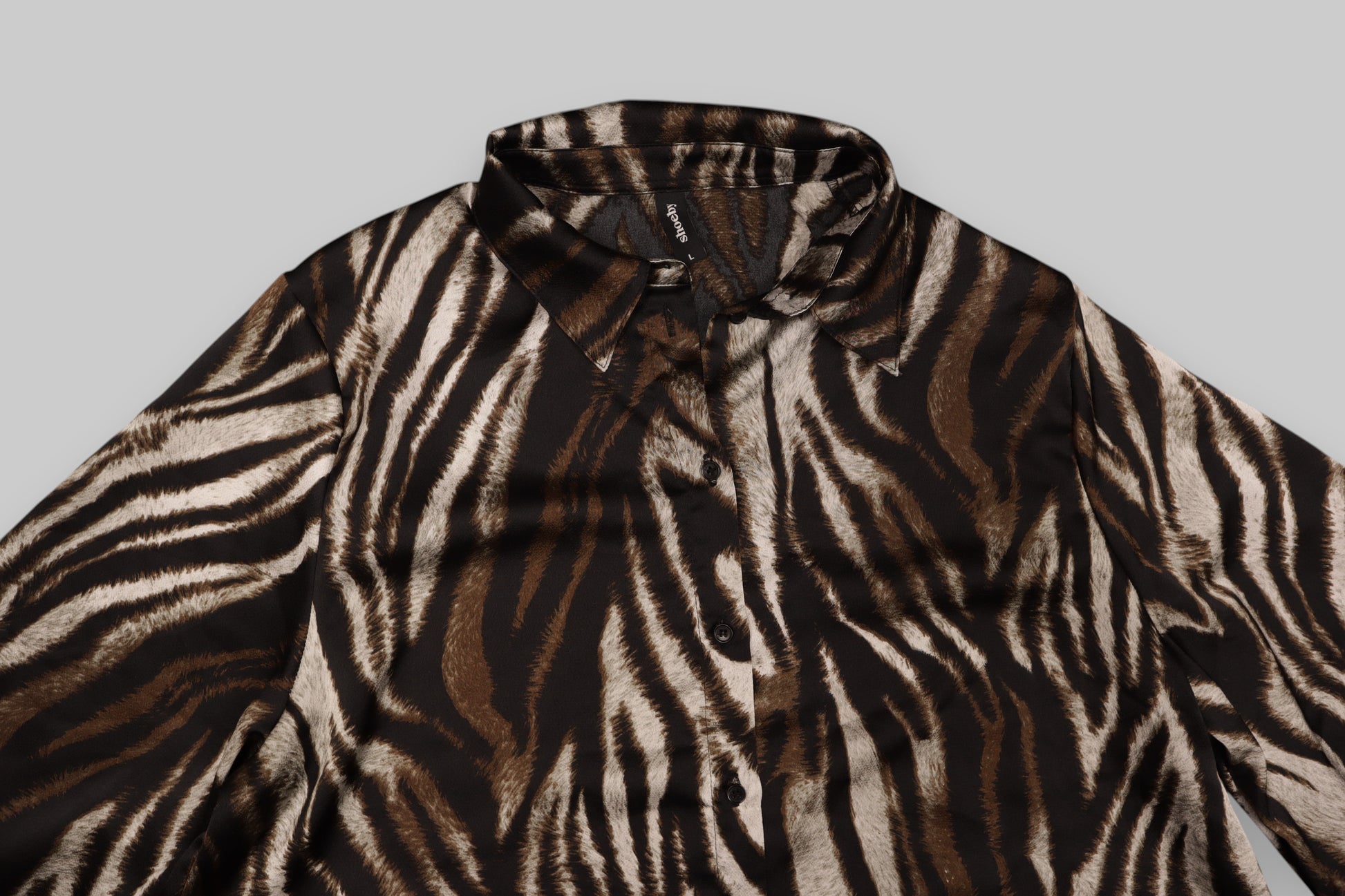 Zebra Print Long-Sleeve Shirts– Brown, Black & Cream (Size L)